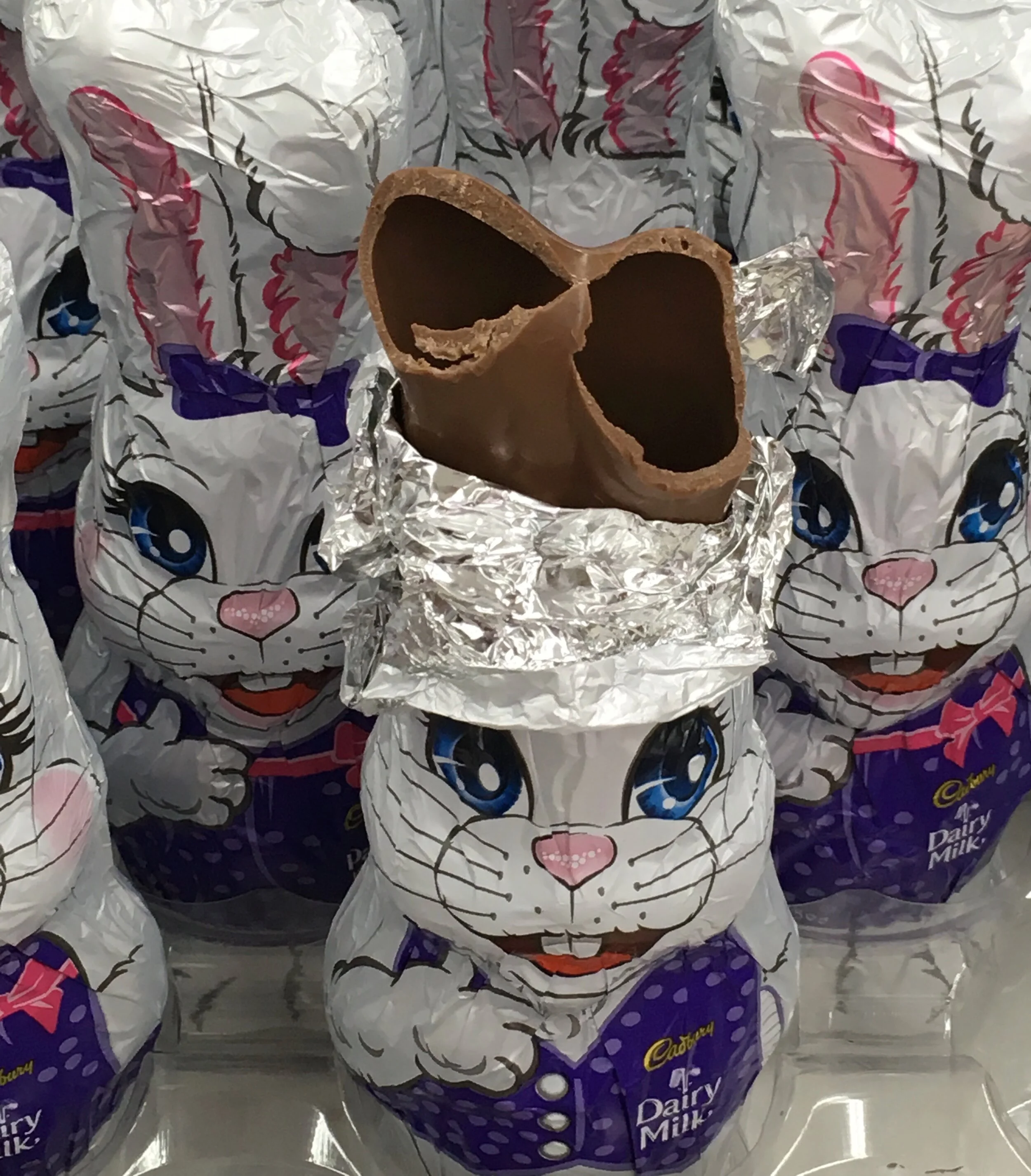 ‘One year I decided not to eat my chocolate rabbit and I had it displayed on my glory box before I was married. Then one morning I woke up to discover that the face of the twin rabbits was missing! My sister later told me she heard a crunching noise in the night. Ho-hum that mouse would have had a fat tummy…so watch out for the little mates who may like your treats.’